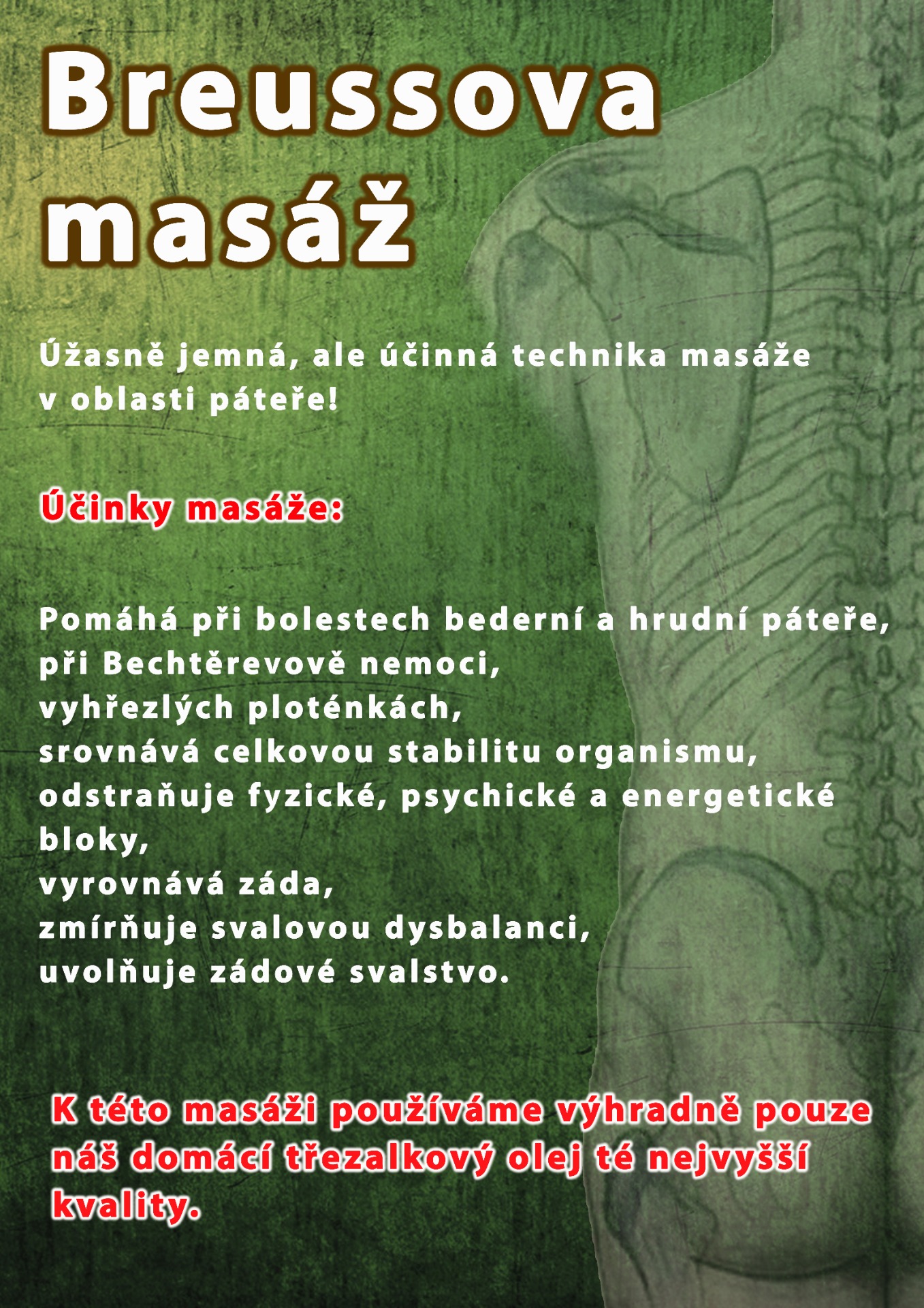 Při masáži dochází k uvolnění páteře po celé své délce, ramen, trapézů, lopatek, beder, kříže a kyčlí.